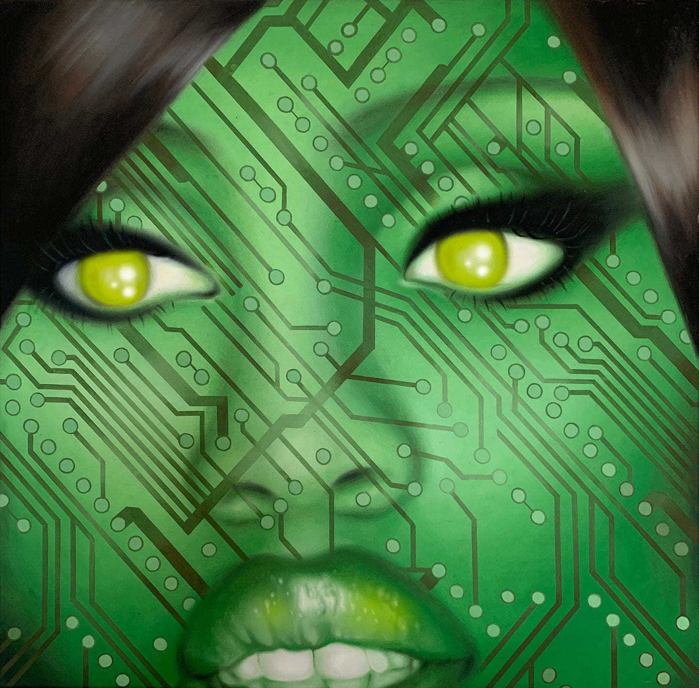 Designed digitally, replicated in oils, then redigitized.